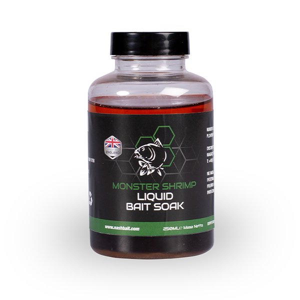 Nashbait Monster Shrimp Liquid Bait Soak ist hervorragend geeignet, um die Attraktivität von Boilies und Futter zu erhöhen.
