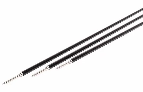 Sehr stabile schwarze Storm Sticks mit starkem Kopf und Schraube. Sie sind aus hart anodisiertem Aluminium. Der innere Stab ist aus stabiler Kohlefaser, um den Stormstick so leicht wie möglich zu machen. Die Schraube ist gesichert und kann nicht verlorengehen. Die Spitze ist lang und ähnlich einem Golf-Tee gestaltet.