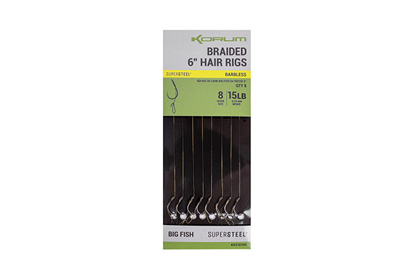 Korum Big Fish Braided Hair Rigs Barbless. In der Hakengröße 8.