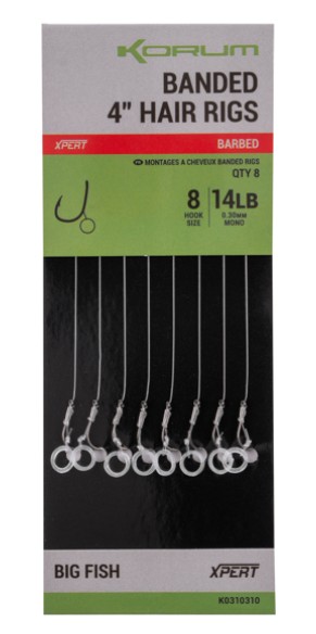 Korum Fishing Banded Rigs Barbed 4 Inch. In der Hakengröße 8.