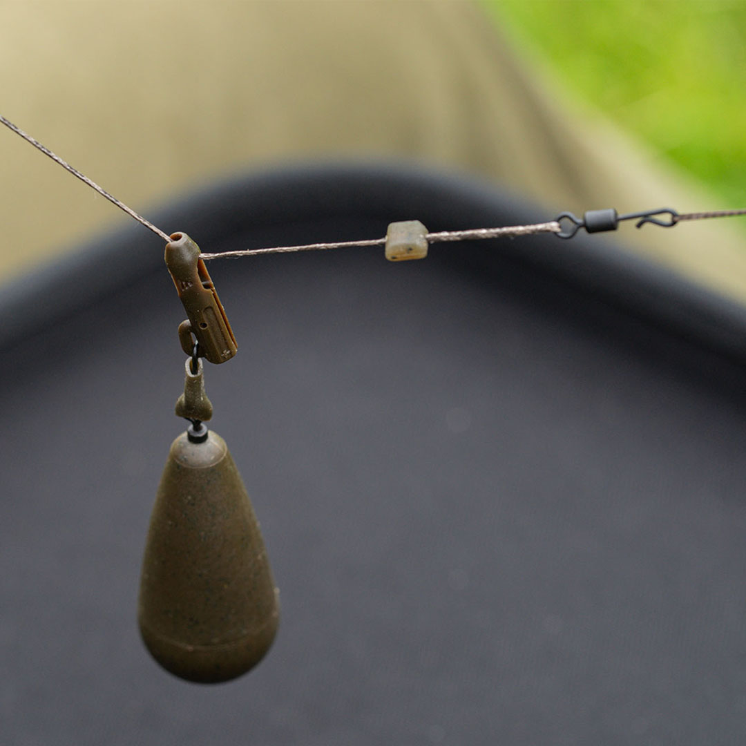 Der Clip verfügt über ein seitliches Loch, so dass dder Wirbel mit PVA fixiert werden kann, für die Verwendung mit PVA-Sticks. Der Gummistopfen hält das Setup während des Gebrauchs unter leichter Spannung und wird im Freilauf zu einem Schockabsorber. Tube kann in die Bohrung am hinteren Ende des Stopfens eingeführt werden, um ihn in Position zu halten. Geliefert mit Gewichtsgliedern zum schnellen Anbringen/Abnehmen des Gewichts/der Leine und Silikonmanschetten, die über das Gewichtsglied passen, um Verwicklungen zu vermeiden.