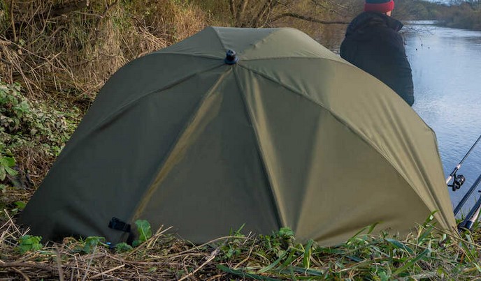 Korum Supa Lite River Brolly ist ein sehr leichter Schirm für den mobilen Specimen-Angler.