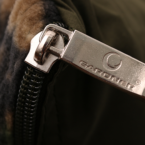 Das Fleece ist in unserem beliebten Camo-Muster „Smokey Branch“ ausgeführt, und die Baumwollseite ist einfarbig in „Carpy“-Olivgrün gehalten.
